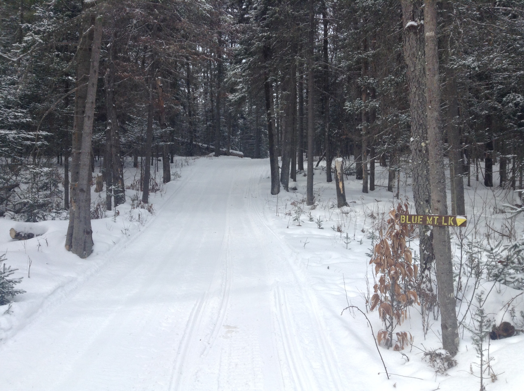 The short trail from Blue Mountain Rest to the 24 hour gas pumps in Blue Mountain was groomed but still needs some more snow to bury some terrain bumps. It’s a fairly new trail, so it still needs some “seasoning”.