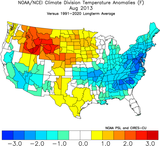 Comparing August 2013 and 2025 for temperature anomalies is a good place to start.