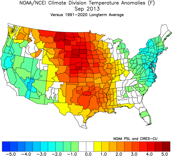 September 2013 played very warm in the middle third of the United States and relatively cool over the eastern United States. But I think something else will come into play this time around.