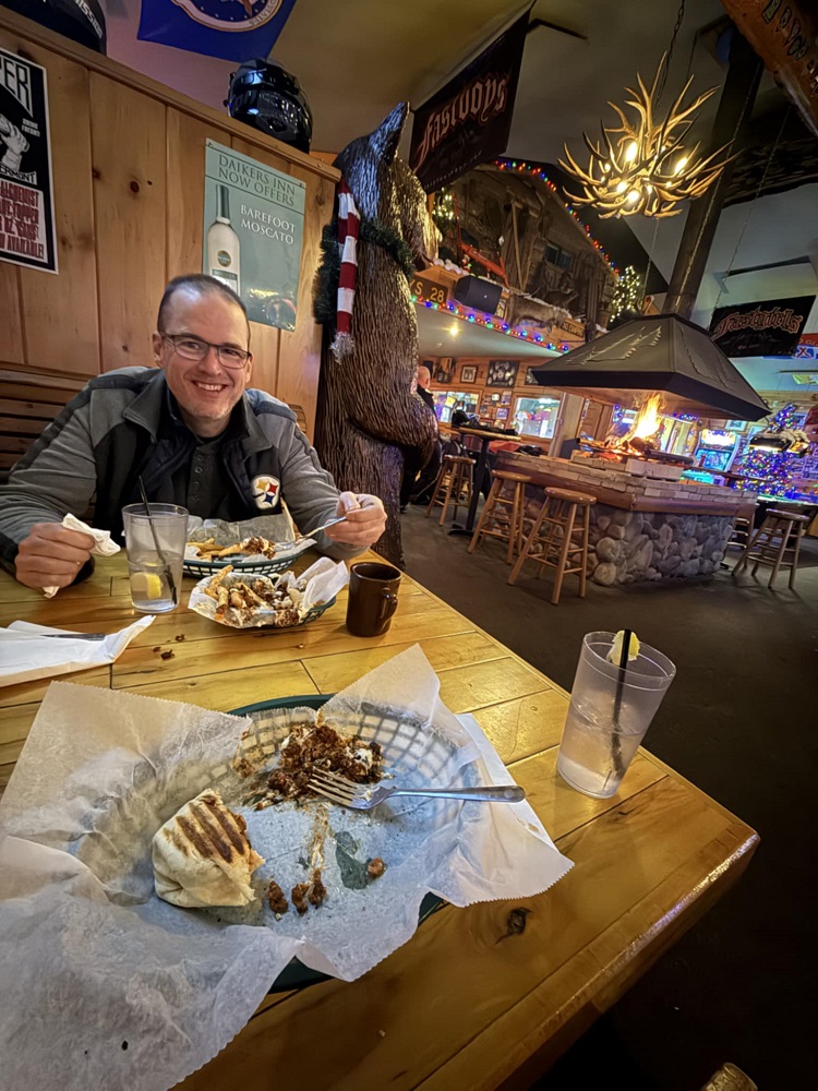 Stopped at Daikers for dinner and was sure to sit near the warm fire! Had no trouble crushing the food that was put before me.