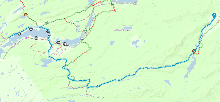 Ole Barn to Gilbert Road had soft bumps, but was easily tolerable. Trail along Route 28 to Eagle Bay was rather bumpy in places, but we muscled through it.