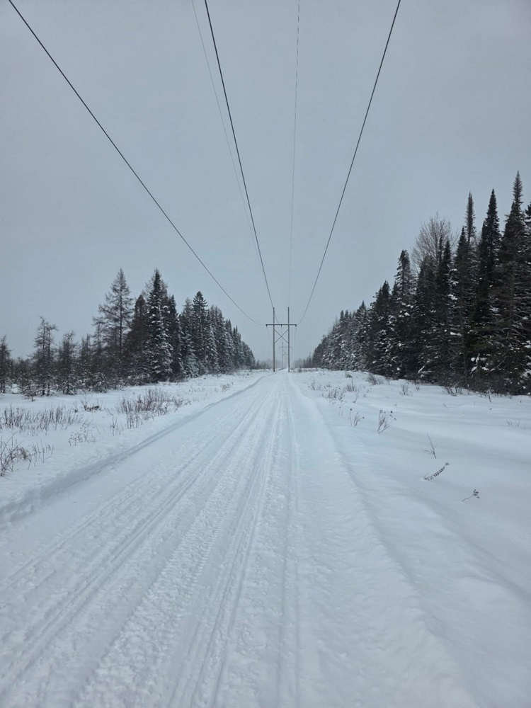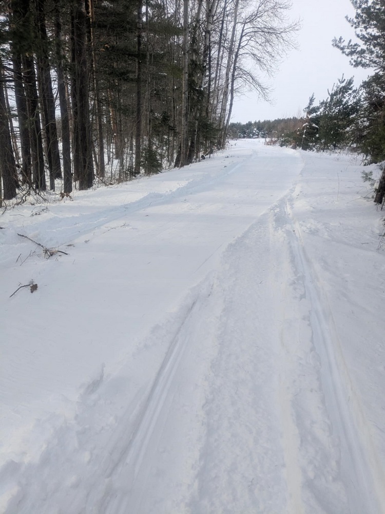We returned to Tupper Lake around 5:30pm with 128 miles of track spun. What a day! Temperature in the mid-20s with off-and-on snow throughout.