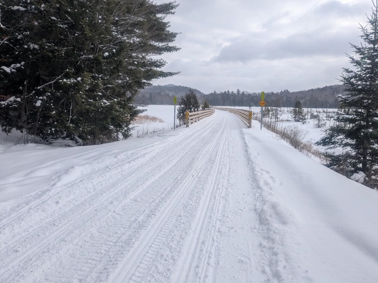 Lake Placid to Charlies Inn via C7B/Rail trail was getting rippled from Sunday’s traffic; but holding up enough to keep the good times rolling.