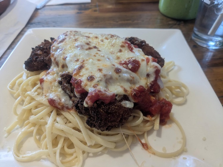 Then it was time to restoke the inner fire with a crispy chicken parm dinner and linguini. No need for me to show the “after pic”. You should know by now that I can clean a plate!