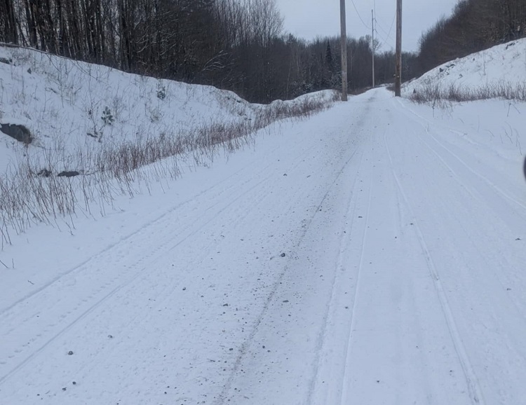 C8A into Lyon Mountain has icy stretches, a couple of water bars and some floating pebbles. But I encountered less rock-top clank than anticipated. Made it to Iron Ore Market for a fuel stop.