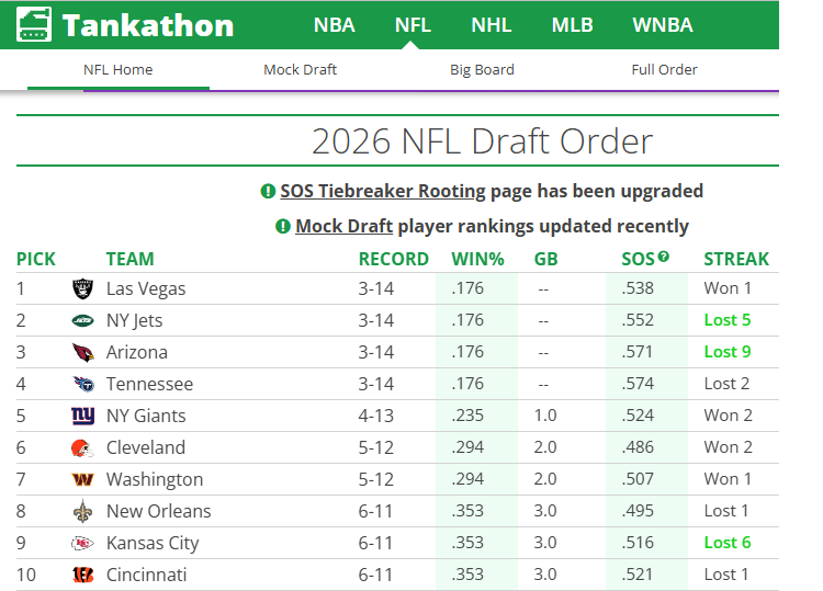 Washington WON and screwed up its chance to move up to #5 in the 2026 draft order. My team couldn’t even tank right. No half measures. When you suck, you gotta go all in. Tank for ’26!