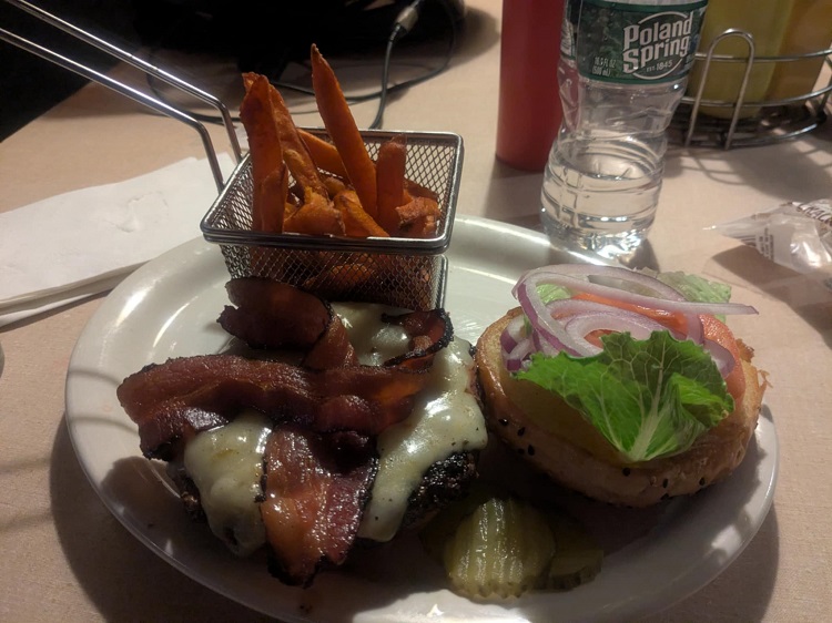 Main course was the McSweeney angus burger with pepper jack cheese and bacon. And a side of sweet potato fries. Good thing I came hungry! That hit the spot.