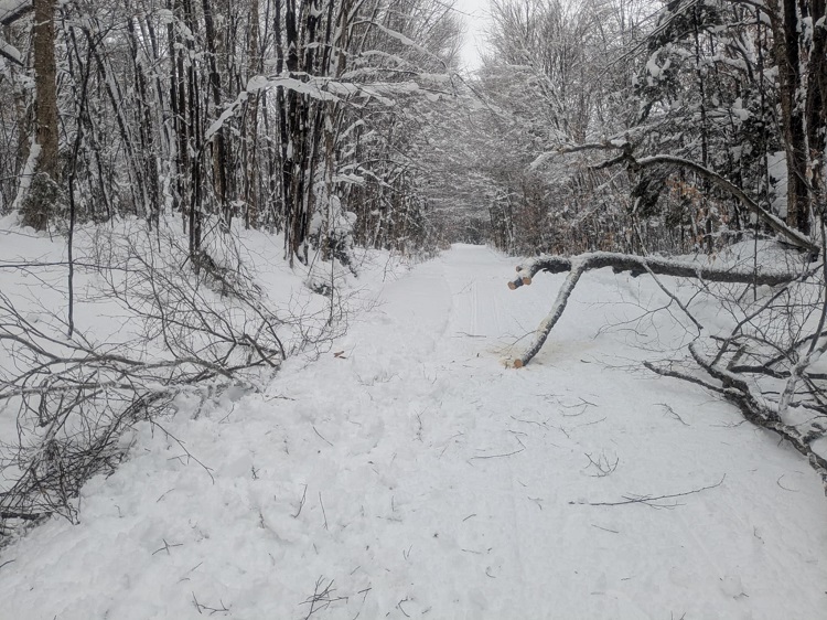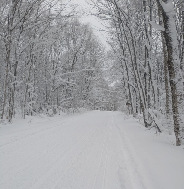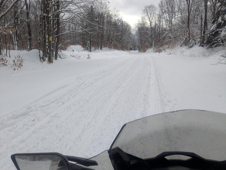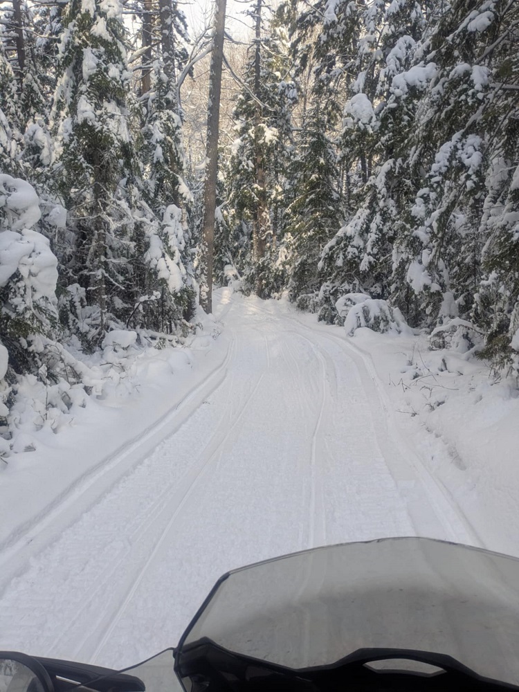Inlet loop trails were good to great riding. Made my way to Red’s Market via Limekiln Road groomed snowbank. Threw a splash of gas in the tank and took a short breather in the store.