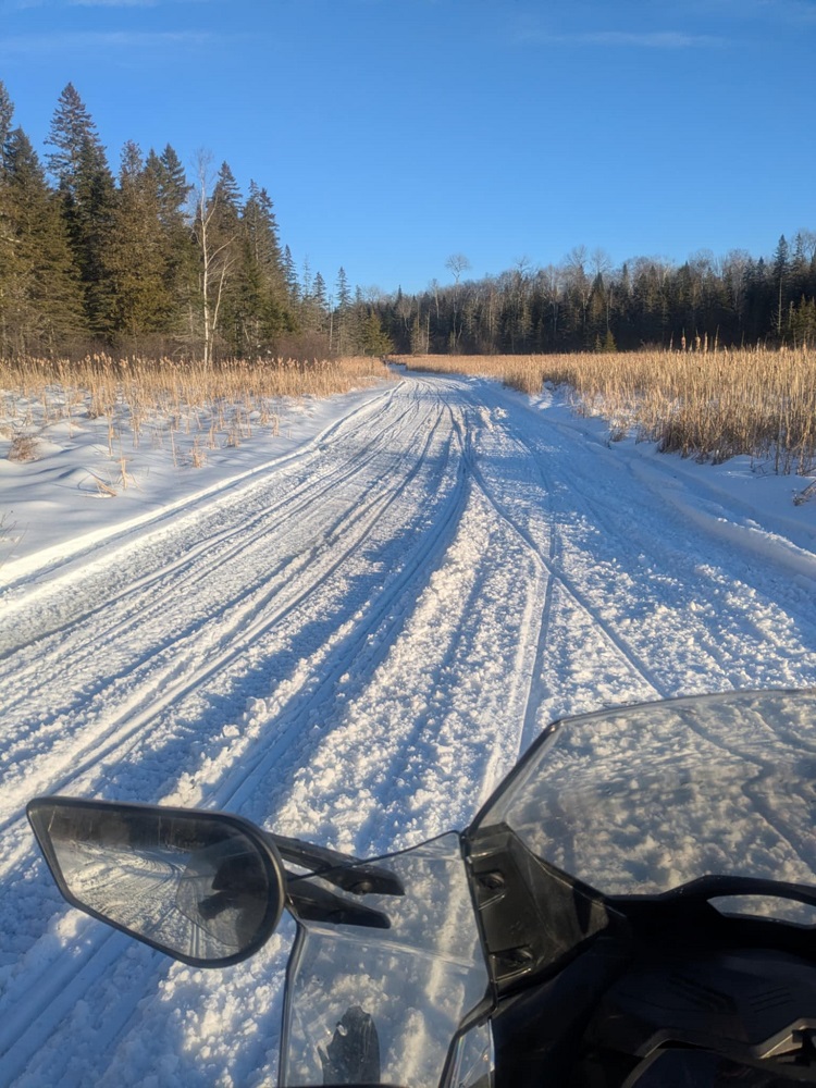 Seasonal road to Forked Lake was groomed for a pretty good ride. Did the “grip-it-and-rip-it” across Forked Lake. Velvety crossing and one wide slush patch.