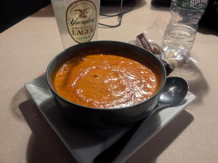Started with roasted red pepper and smoked gouda soup. It’s incredible! One of my favorites.
