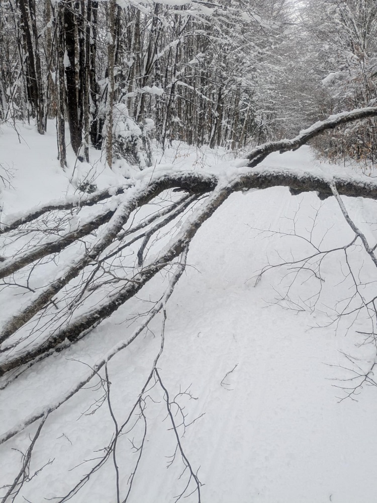 Encountered a fallen tree about a mile south of Newcomb T intersection.
