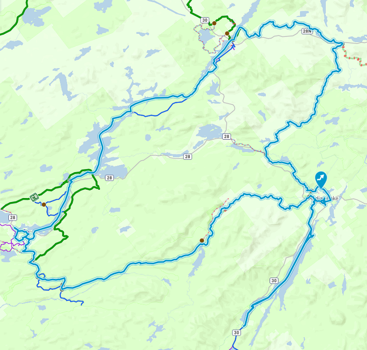 Getting to the Newcomb-T seemed like work. At that point, I decided to take a sniff of C7B. Half mile spur to Route 28N was ungroomed and bumpy. Caught a recent groom after crossing the highway for a passable ride to Long Lake. There were several rough water bar spots within the first couple of miles.