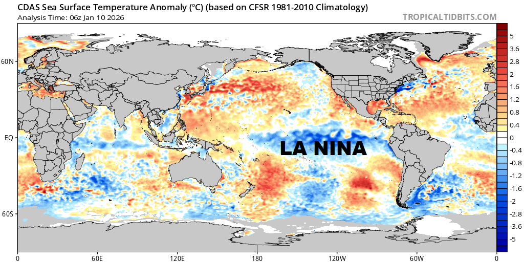 Although this La Niña episode has likely peaked and should gradually weaken from this point, it will influence the entire winter.
