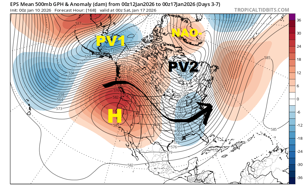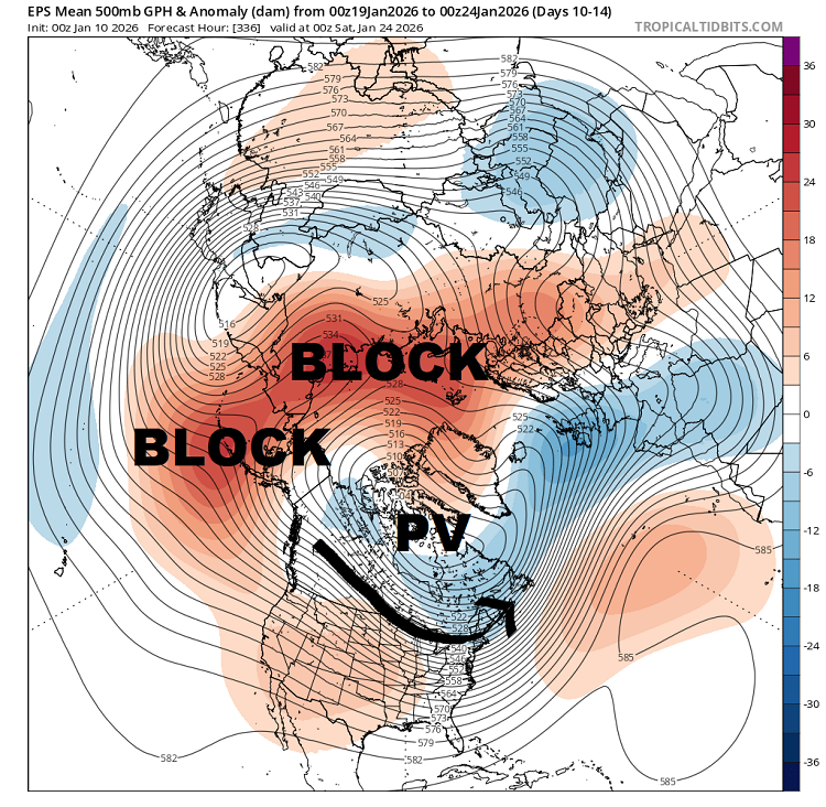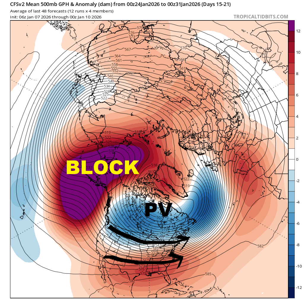 EXPANSIVE high-latitude blocking regime should tele-connect with a parade of Canadian clippers, lake-effect snow events and Arctic cold shots around base of the Polar Vortex (PV)