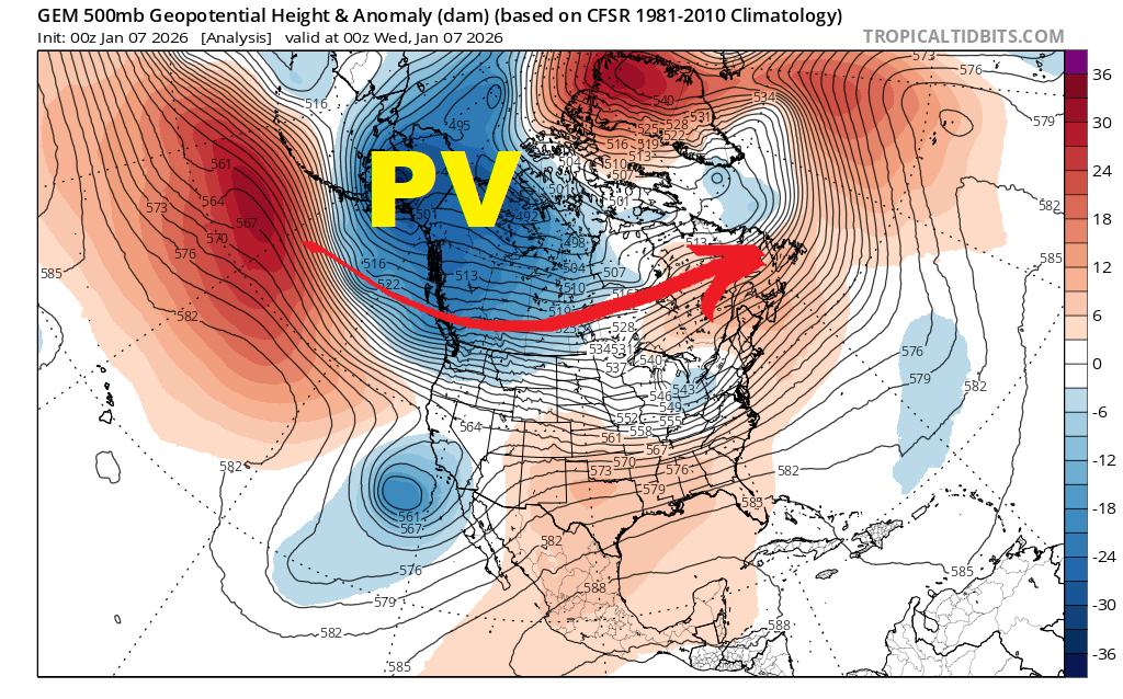 • Hudson Bay Polar Vortex (PV2) becoming re-established