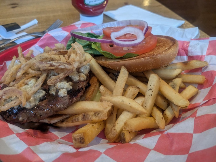 Main course was Gorgonzola burger with fries. SOOOO GOOD!
