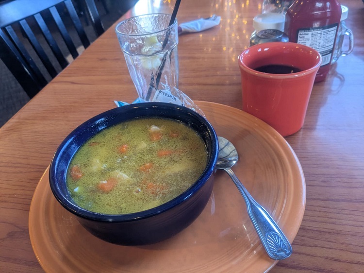 Got warm fluids with coffee and hearty chicken noodle soup.