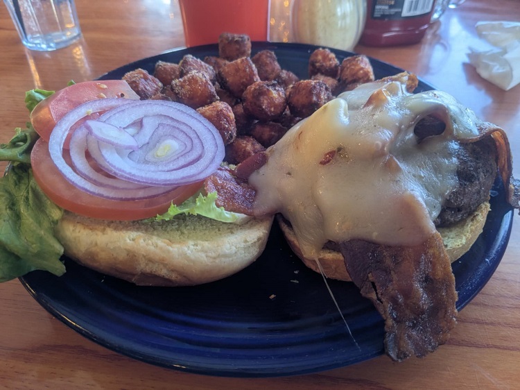 And I didn’t leave hungry after the 1/2 pound burger and sweet potato tots. There was a patty under all that cheese and bacon, lol! Shame me if you must, but who wants to live forever anyway?