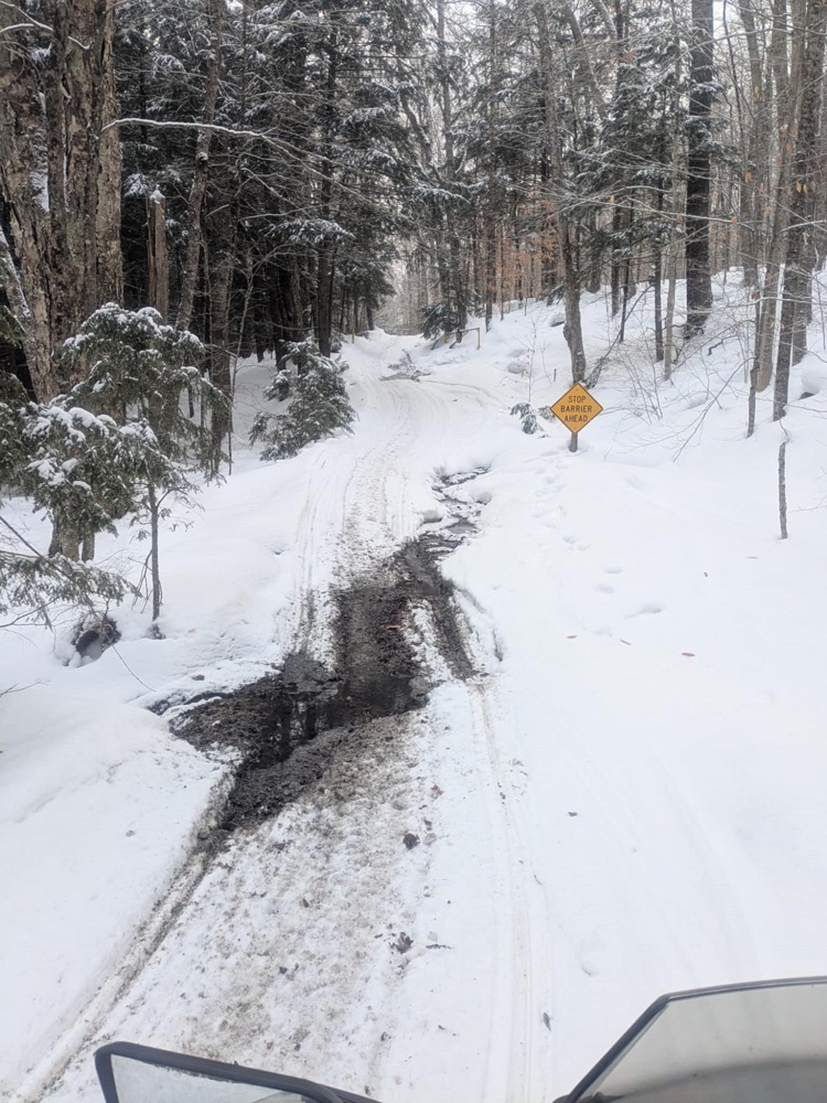 Seasonal road snowmobile trails are your safest rides. Ride with extra caution on narrow, woodsy trails on account of water hazards.