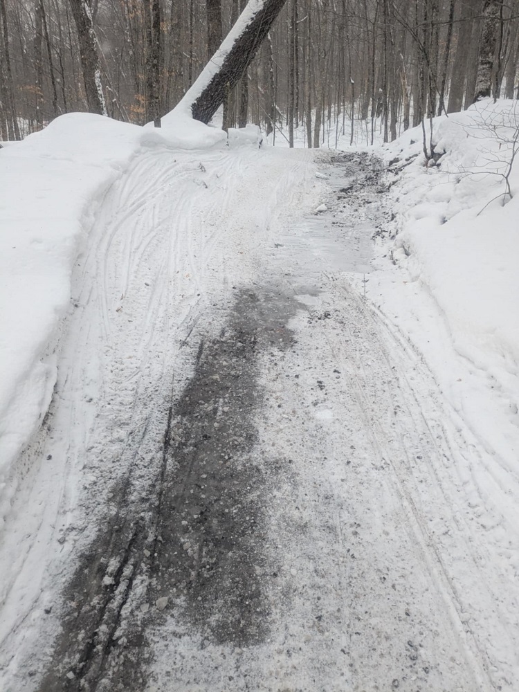 LP1/Page Street trail was snirty in places, but groomed for a good ride. Ripped across Sacandaga Lake.