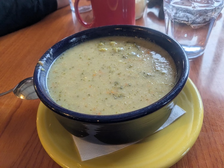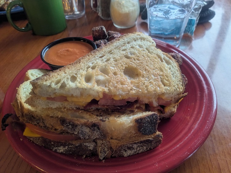 Got to Oxbow Inn mid-afternoon for lunch. Broccoli and cheddar soup to start. Main course was grown up grilled cheese sandwich with side of sweet potato tots. That hit the spot!