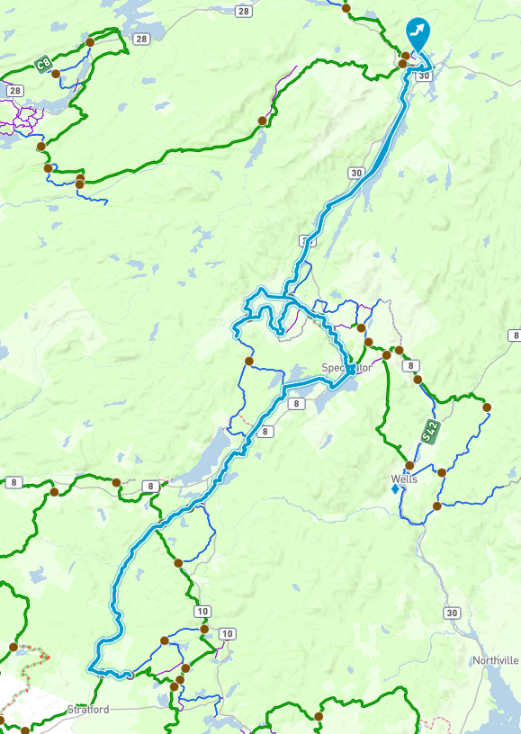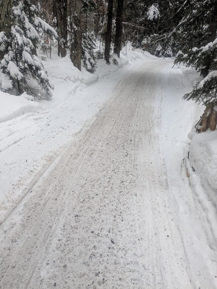 Indian Lake town trails, including C8/Sabael trail had been groomed, but had stubborn residual bumps. Still had to be careful of some holes in C8/Sabael trail.