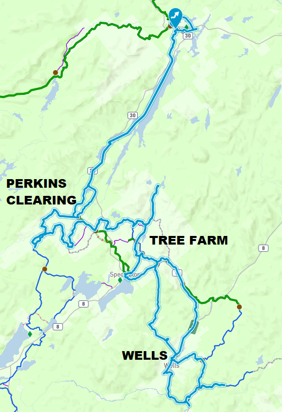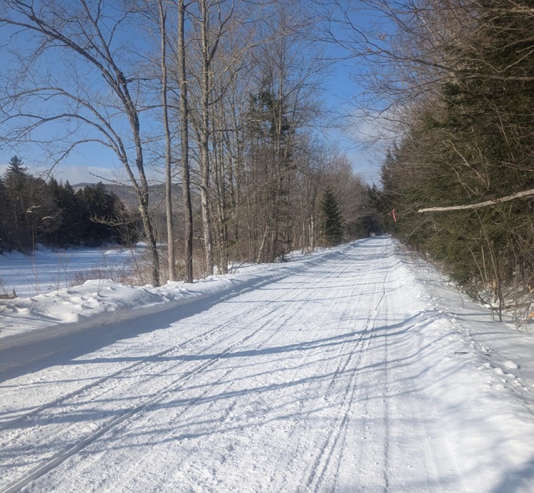 C4B/Gilmantown trail has been reopened and groomed after being closed for logging. Was plowed thin in places through logging slash the first half mile off Route 8/30. Wasn’t a very good ride the first mile or so. But it became really FUN into Wells, especially the power line sections.