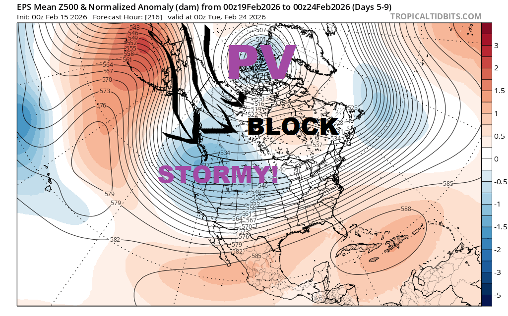 February 19-24 time frame appears brutally cold into western Canada with cross-polar flow. Western USA should be stormy with snow piling up in multiples of feet in the various mountain ranges.