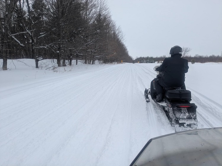 Sun splashed St. Lawrence snowmobiling