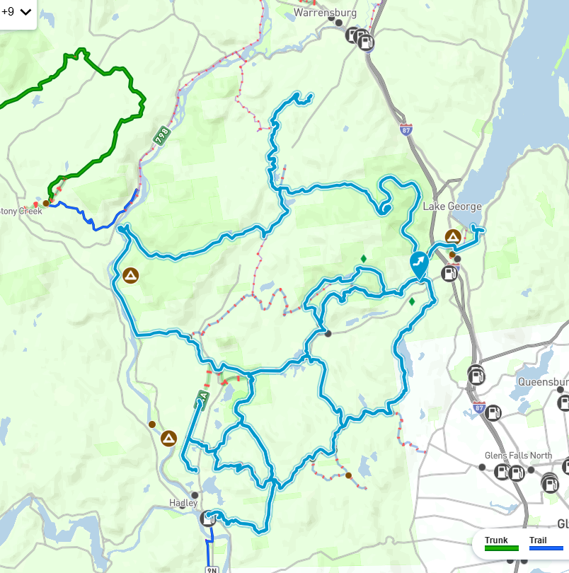 From Lake Luzerne, I couldn’t find the connector railroad trail into Saratoga Snowmobile Association trails. Don’t think I would have ridden it because I despise riding on rails, but I was curious and gathering intel. Some fellow riders I would meet at lunch later told me how it’s done.