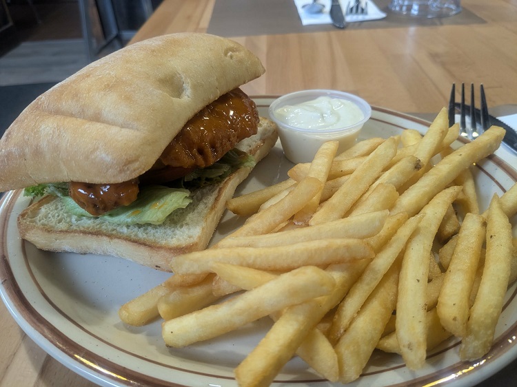 Had The Buffalo – Fried chicken tossed in Buffalo sauce, lettuce and tomato on Ciabatta. And side of fries. GOOD SANDWICH!